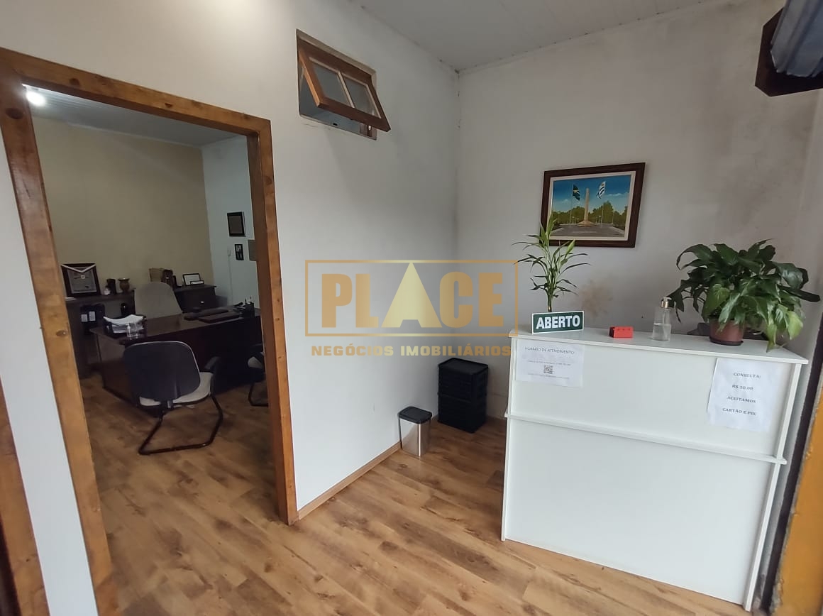 Uma área comercial, já alugada, com ampla sala e cozinha integradas, escritório e banheiro social.