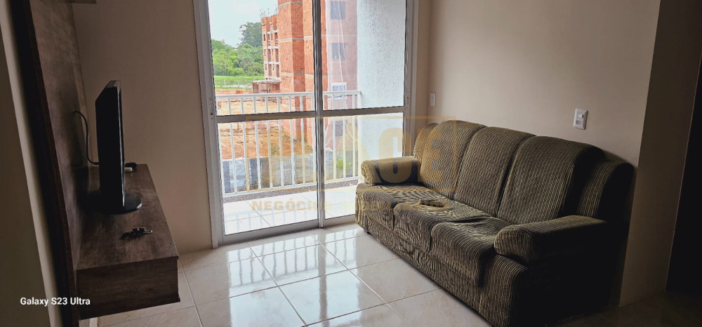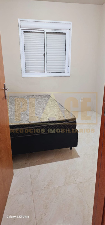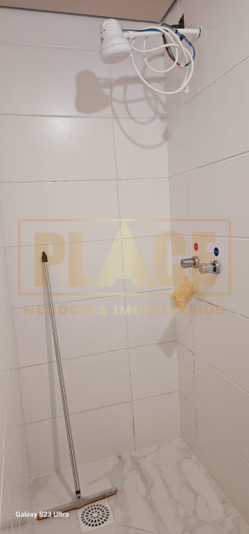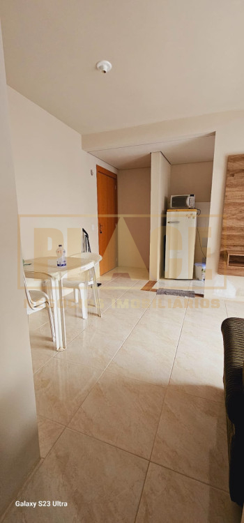 Apartamento mobiliado com 02 camas, sofá, geladeira, fogão, máquina de lavar, micro-ondas, armário da cozinha, torradeira, cafeteira, televisão, roupeiro de solteiro e chuveiro.